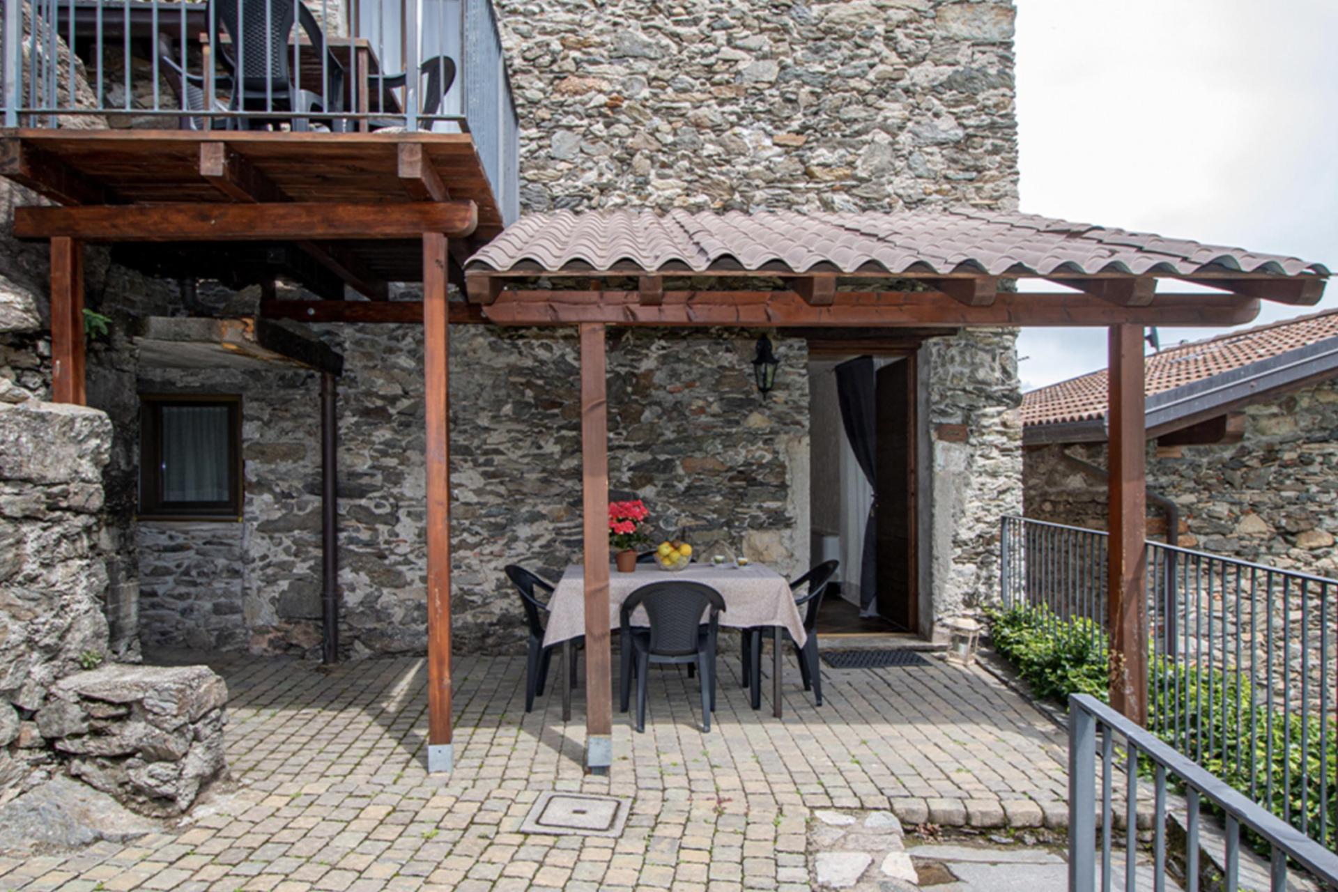 The agriturismo consists of 9 apartments in 4 houses built in the typical rustic style of Lake Como, with grey stone and wooden ceilings. Each apartment has a private balcony, terrace or garden with table and chairs. The apartments are warmly decorated and equipped with oven, dishwasher, toaster and coffee maker. Because the houses are built on the mountainside, the apartments are all different in size and located on different levels. That lends a quaint atmosphere and you feel like you are staying in a medieval village.