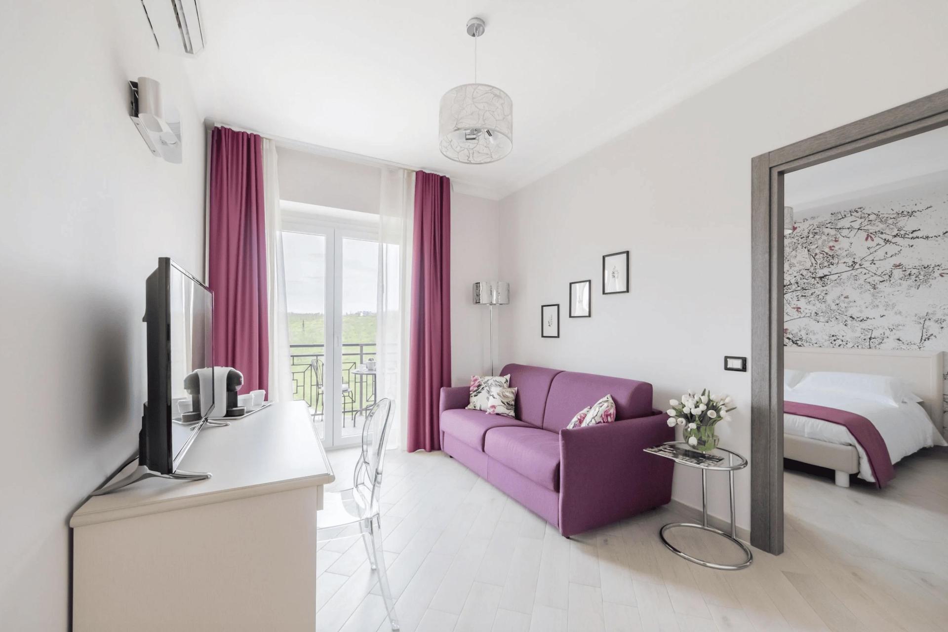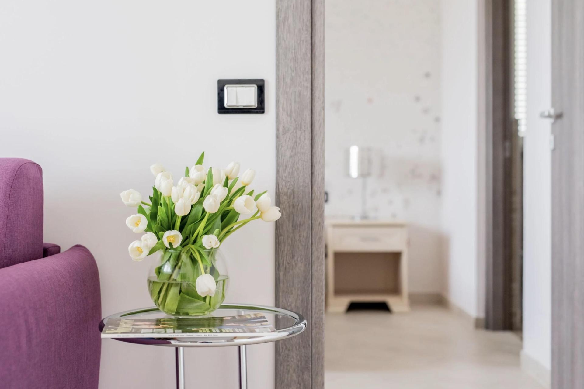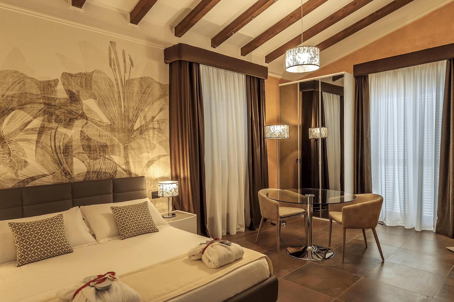 The ground‑floor rooms have their own small garden, while the rooms on the first and second floors have a small balcony. There is also a detached suite with a private garden and a spacious terrace. The jacuzzi adds extra comfort to this suite, making it ideal for a special stay.
