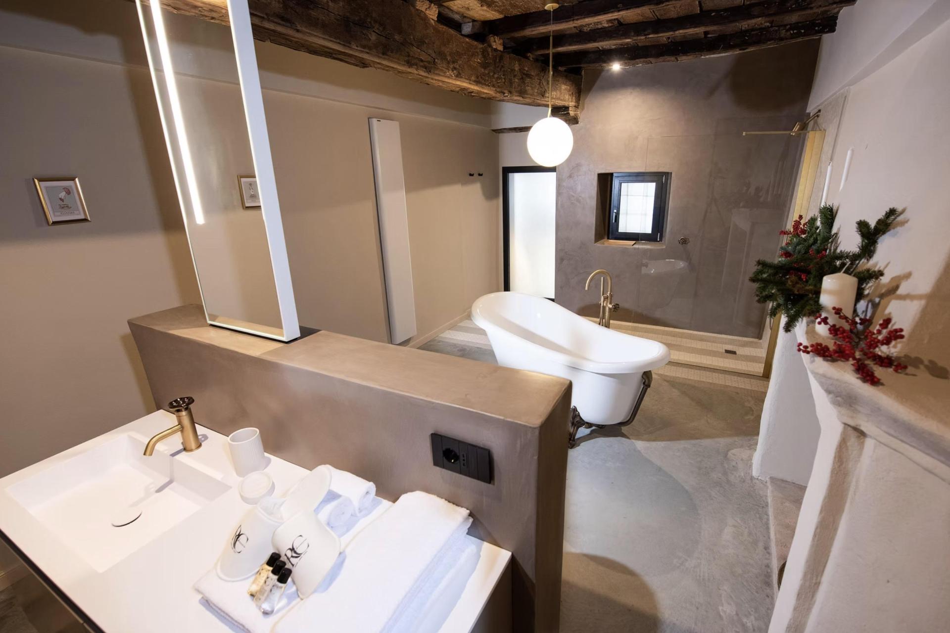 In the charming inner courtyard stands an old olive tree, forming the symbolic heart of the property. Comfortable armchairs and parasols make it a wonderful spot to sit in the evening with a good glass of wine. For guests who would like to explore the surroundings more actively, e-bikes are available for hire. There is also a charging point for electric cars.