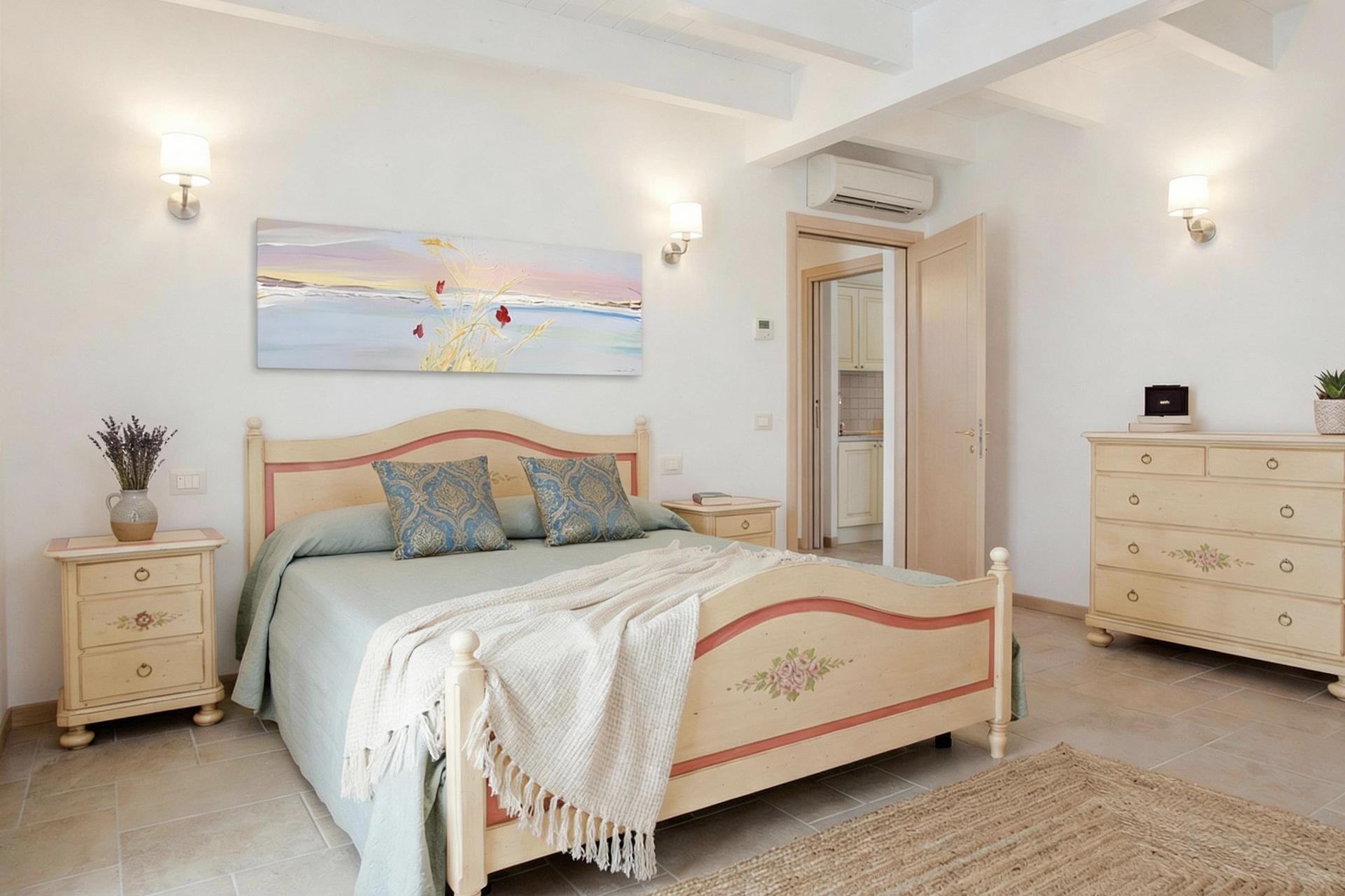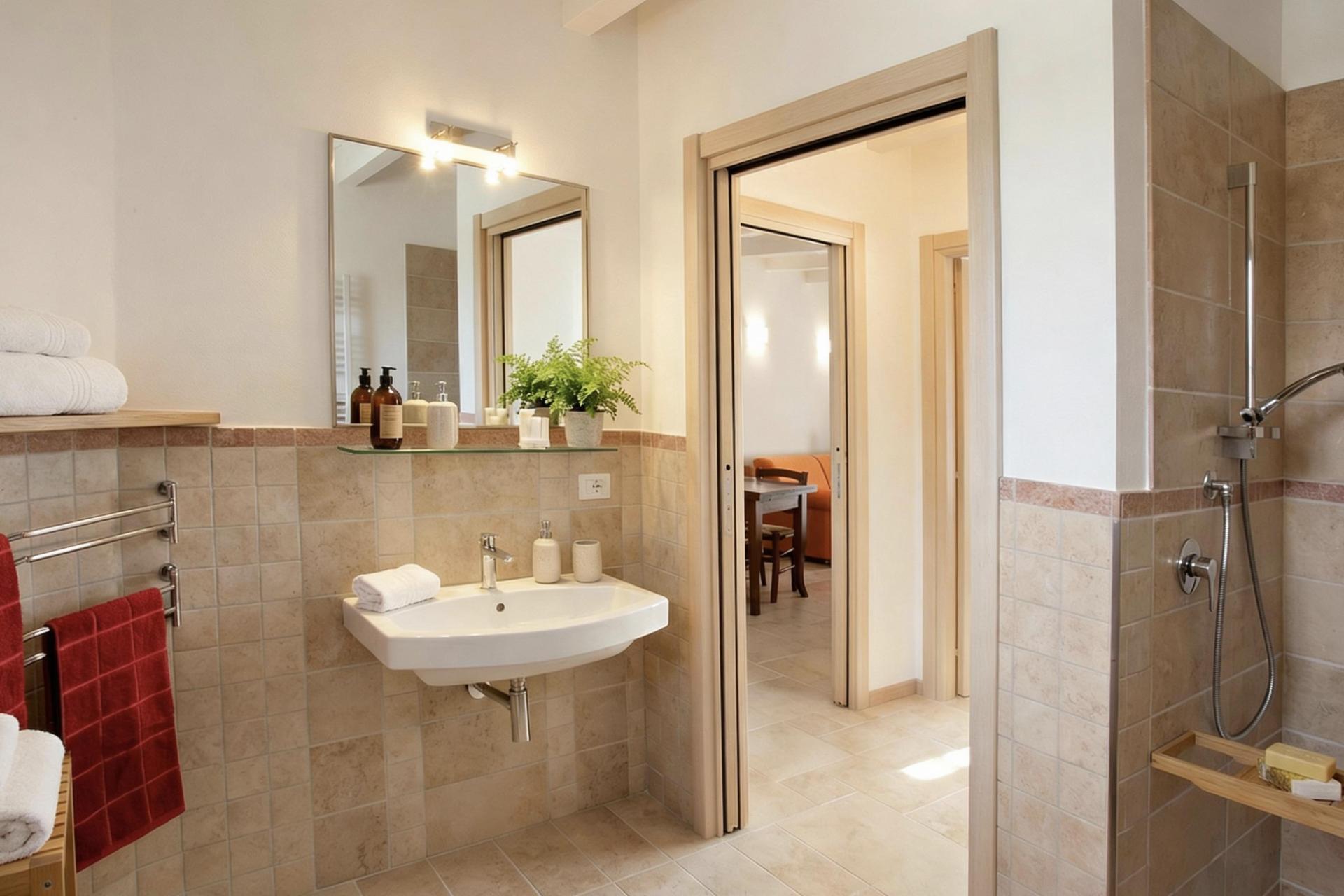 The agriturismo has a total of 10 apartments, all with private terrace with sea views. There are six so-called bilocale apartments with one bedroom and four trilocale apartments with two bedrooms. There are apartments on the ground floor and the first floor (there is an elevator). All apartments have a kitchen with 4-burner electric stove and refrigerator and they have also been fitted with air conditioning, wifi, dishwasher and LCD TV. There is a shared washing machine.