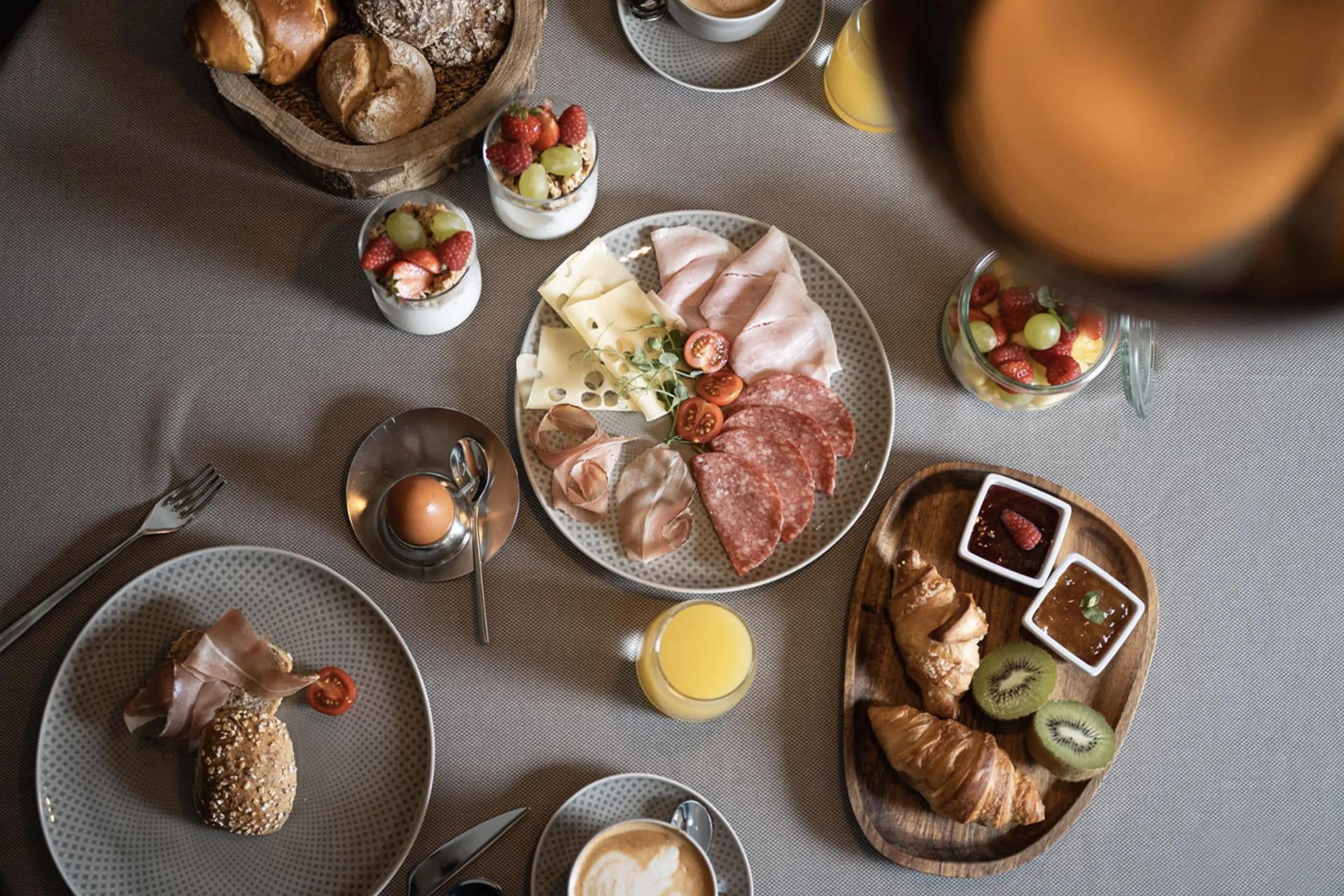 The hotel has a restaurant, bar, a pool and its own spa. You can book B&B (includes breakfast) or half board (includes dinner too, not the drinks). All of the rooms are very comfortable and tastefully furnished using lots of wood, warm colours and atmospheric lighting. No effort has been spared to give you the wonderful feeling of coming home. In the evening I had dinner in the cosy restaurant. All the dishes were equally exquisite, but I’ll gladly return for the desserts alone! The huge selection of mouth-watering desserts made choosing so very hard that I decided to have several of them! The generous breakfast buffet was equally varied: Utter indulgence, and a great start to the day.