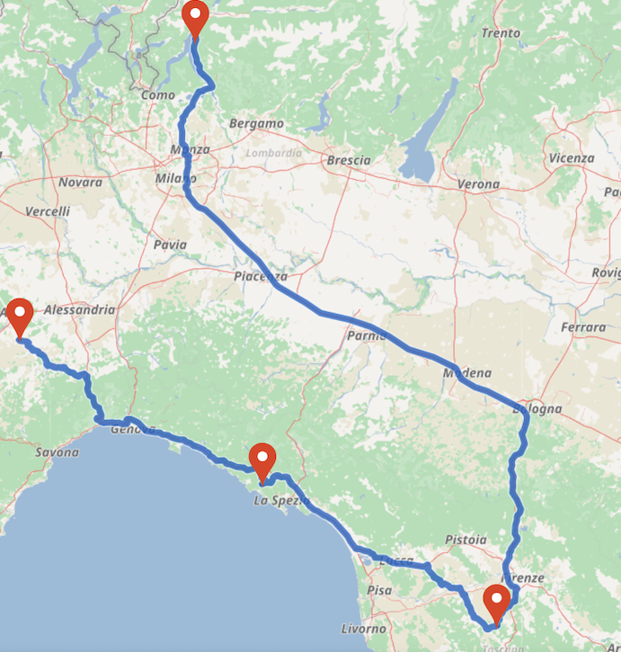 This self-drive tour takes you through some of Italy’s most beautiful regions, with stays in charming accommodations including breakfast. The journey begins at Lake Como, a popular and stunning destination known for its picturesque villages and crystal-clear waters. From there, you’ll head to Tuscany, where the rolling hills of Chianti invite you to taste local wines and regional cuisine. The route then leads to the Ligurian coast, home to the colorful villages of the Cinque Terre and breathtaking sea views. The trip concludes in Piedmont, renowned for its wines and exceptional slow food cuisine, where you can savor delicious dishes and admire the beautiful landscapes. A relaxing journey full of charm, authentic flavors, and unforgettable discoveries!